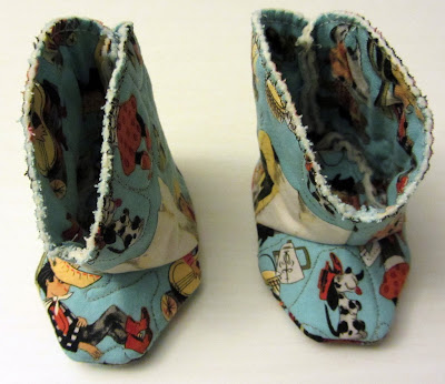 I wanted to vary the prints on the sides and bottoms of the boots, but there was not enough to layer for quilting and cut out right side up motifs on the pattern.